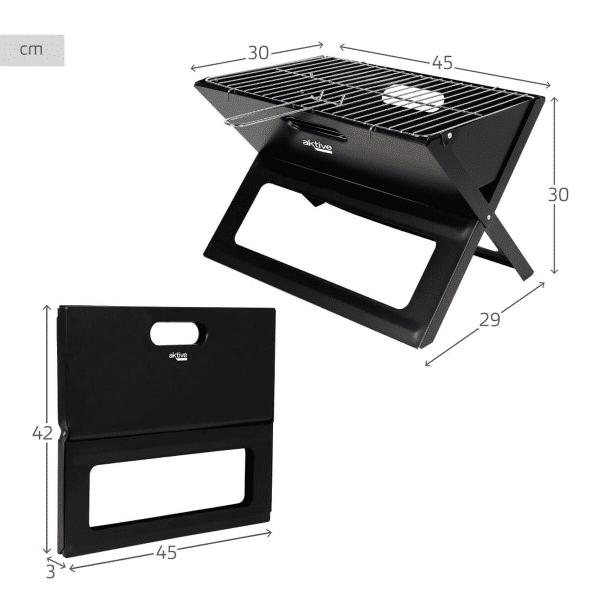شواية محمولة Aktive Black من الفولاذ والحديد الزهر 45 × 30 × 29 سم
